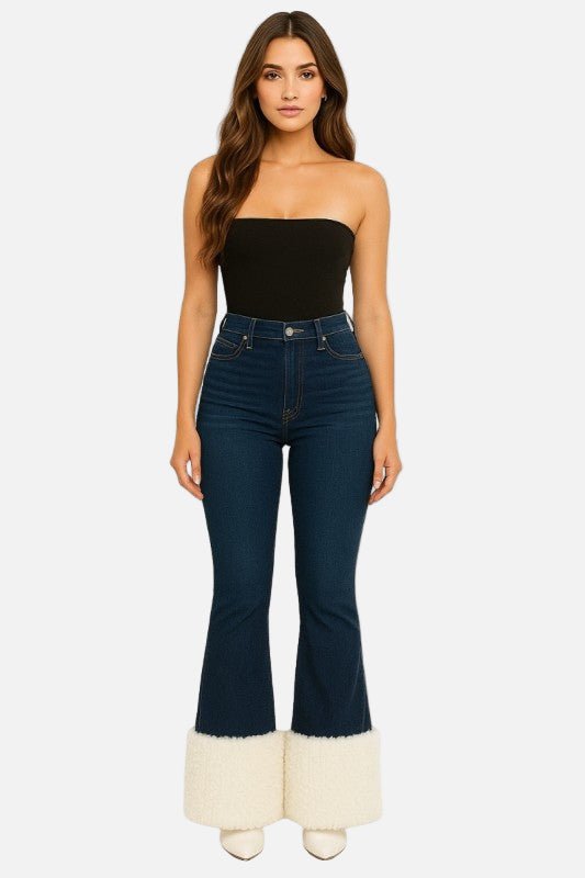 Let’s be real—What Glo Says Sherpa Jean by Kioko is giving luxe cowgirl energy with a city-girl twist. The high-rise fit hugs your shape just right, while those off-white sherpa cuffs? Yeah, they’re the statement. Soft, bold, and unapologetically stylish, these dark wash jeans bring a cozy edge that hits every time. Whether you’re stepping out for a night vibe or pulling a fit for the ‘gram, these jeans say everything—so you don’t have to.